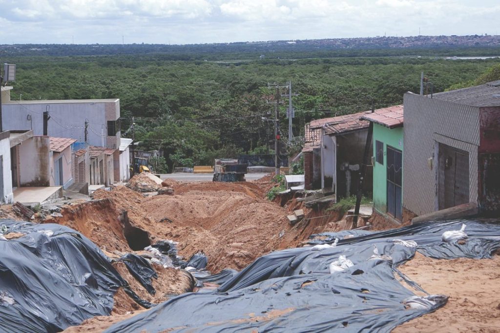 A cratera tem mais de 100 metros de extensão e, no trecho mais profundo, chega a quase a dois metros de altura. A situação levou a Defesa Civil de Natal a interditar cerca de 17 imóveis no local.