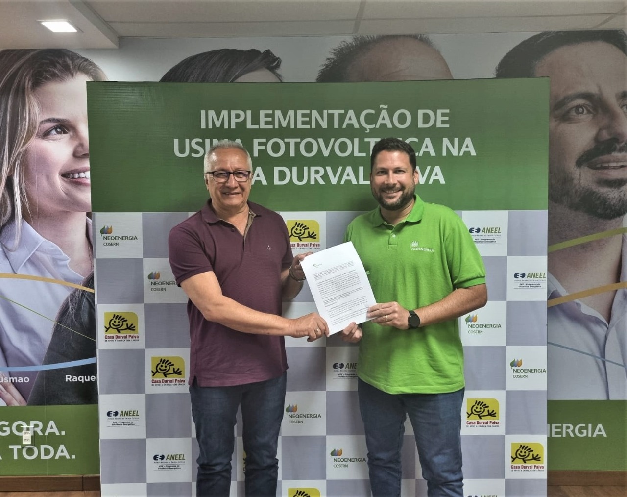 A Neoenergia Cosern e a Casa Durval Paiva de Apoio à Criança com Câncer assinaram na tarde desta terça-feira (13) um Termo de Cooperação Técnica para instalação de uma usina solar com capacidade 26,46 kWp (kilo-Watt-Pico), suficiente para gerar cerca de 40 MWh/ano e que vai permitir uma redução em torno de 25% no consumo de energia da instituição, localizada no bairro de Barro Vermelho, em Natal.