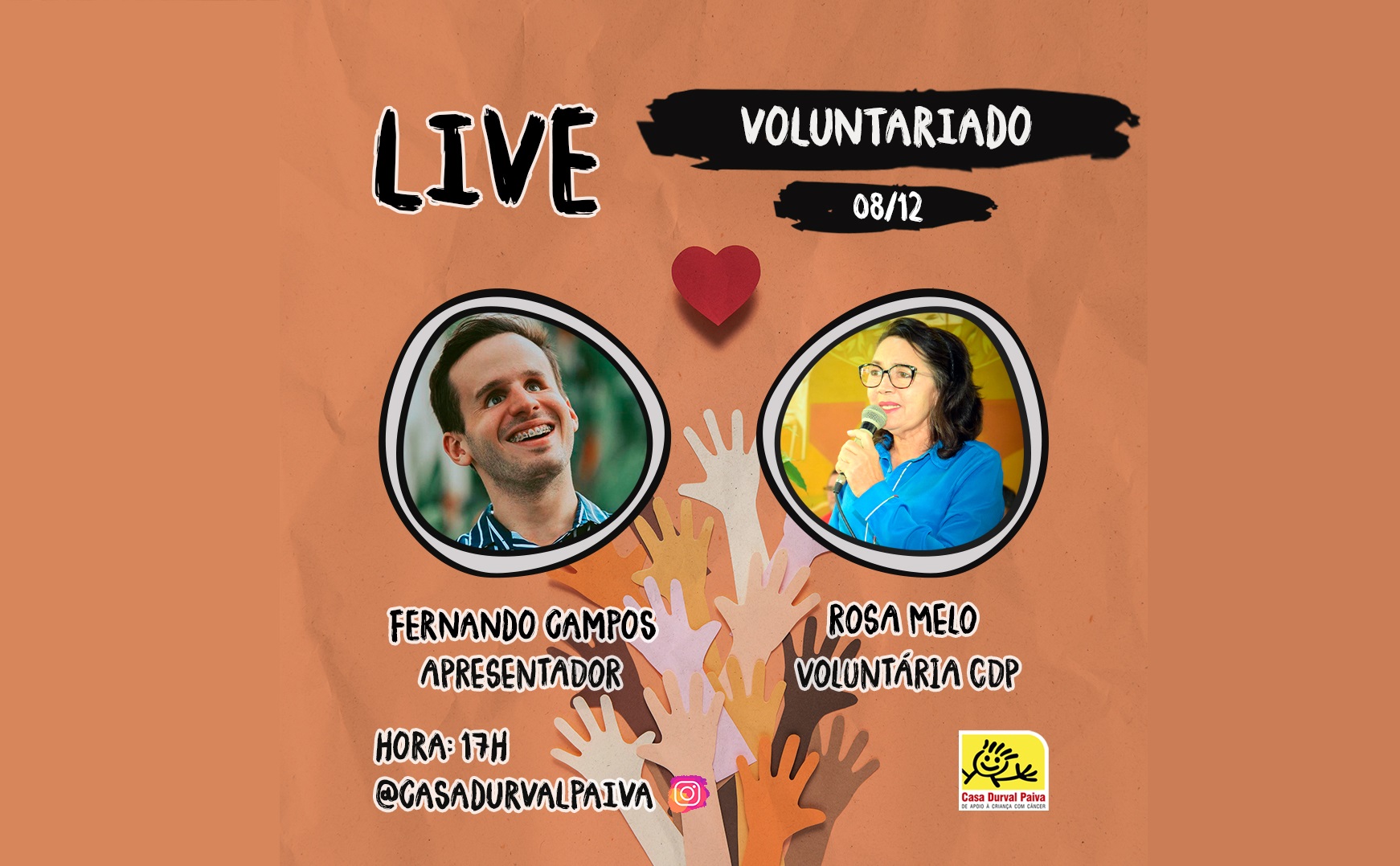 Nesta quinta-feira (08), a partir das 17h, vamos receber a Rosa Melo, que é voluntária da instituição e vai contar um pouco da sua história e de como é fazer esse trabalho de amor. A live será realizada pelo @casadurvalpaiva.