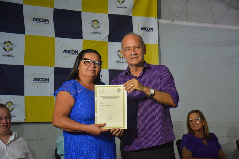 A Prefeitura de Parnamirim, por meio da Secretaria Municipal de Habitação e Regularização Fundiária (Seharf), realizou na noite desta quarta-feira (21), no Centro Administrativo, a entrega das escrituras públicas do Núcleo Morton de Faria, do bairro Nova Esperança. Ao todo, 106 famílias realizaram o sonho de ter seus imóveis regularizados.