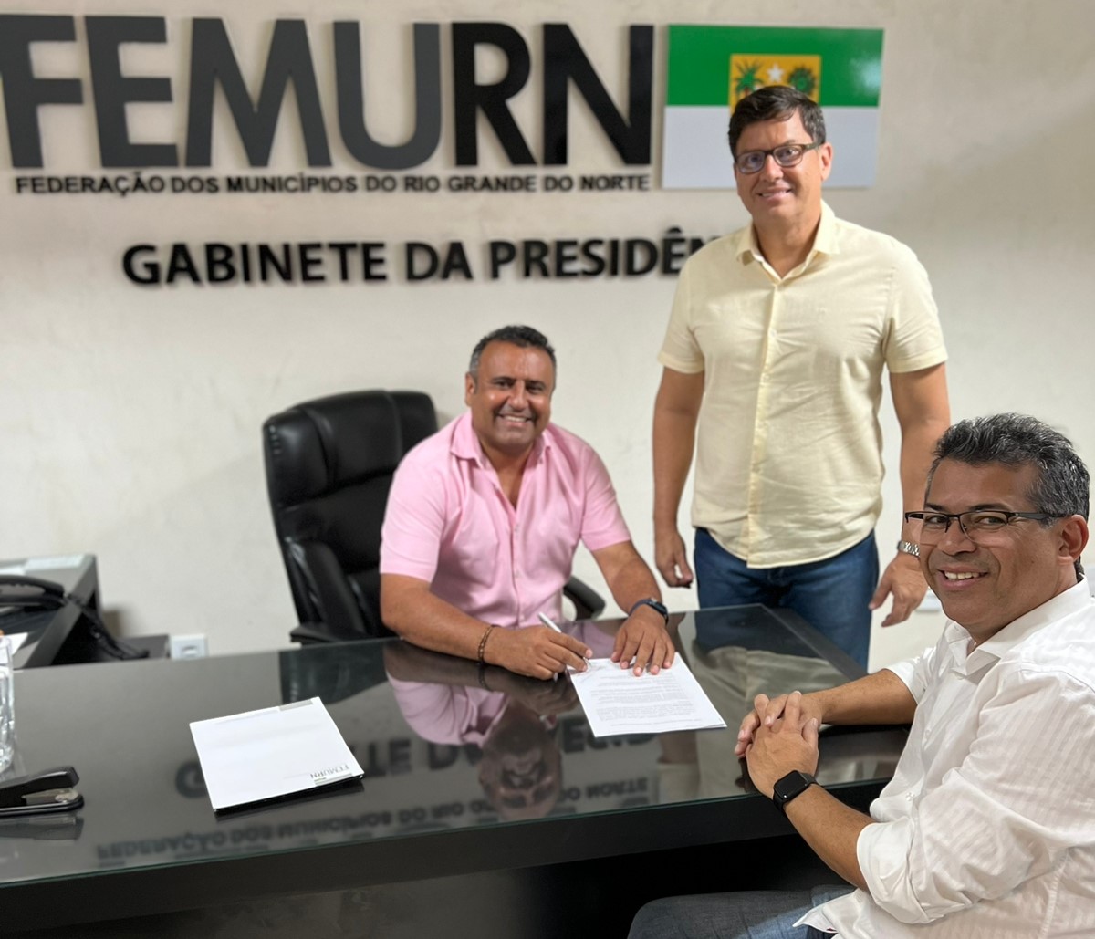 Na tarde desta segunda-feira (9), o prefeito Luciano Santos (Lagoa nova) chegou à sede da Federação dos Municípios do Rio Grande do Norte (Femurn), onde protocolou sua chapa para Eleição da Diretoria e do Conselho Fiscal, contendo assinatura de cada integrante, para o biênio 2023/2024. O presidente da Comissão Eleitoral, Dr. Mário Gomes Teixeira e o atual presidente da entidade, Babá Pereira receberam o protocolo da chapa.