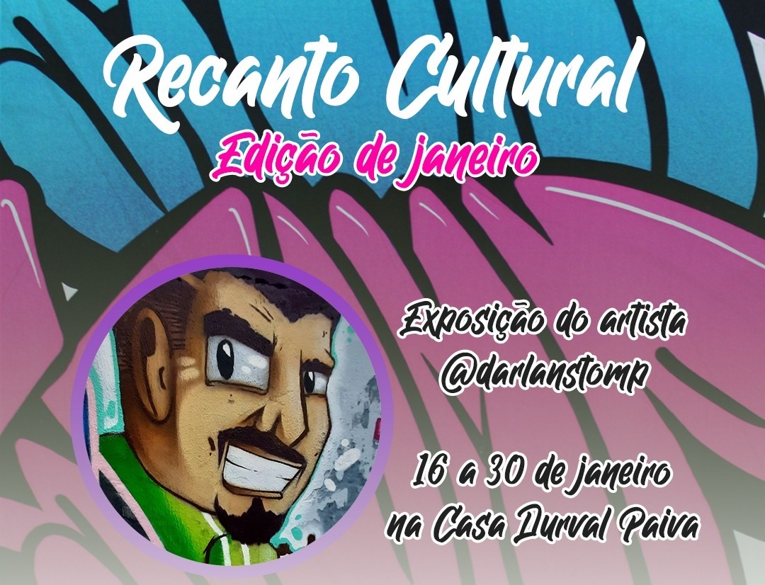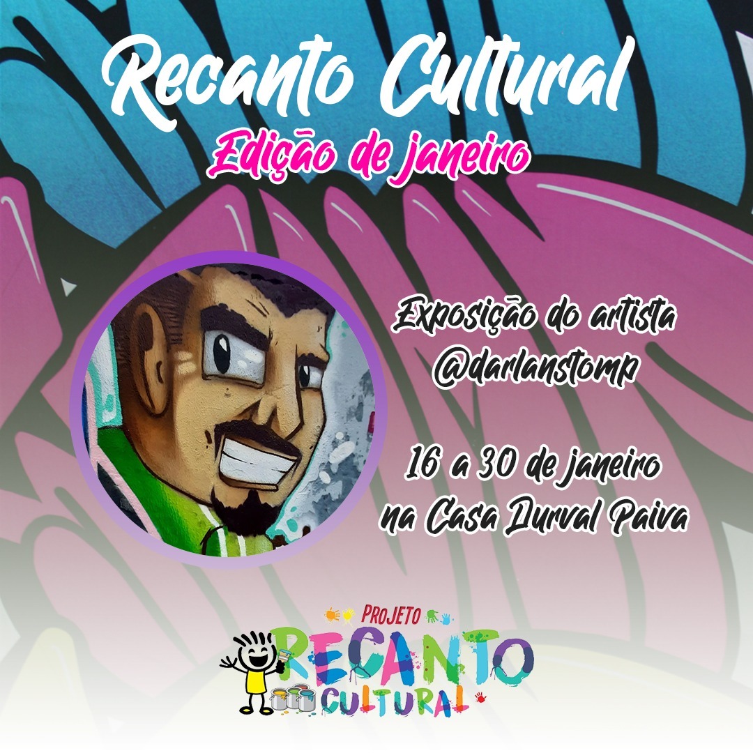 Com o objetivo despertar o interesse pela arte visual regional, nas crianças e acompanhantes acolhidos pela Casa Durval Paiva, o projeto “Recanto Cultural” dá início a sua primeira edição de 2023, de 16 a 30 de janeiro. A ação conta com o apoio de artistas locais e doadores, que fazem exposições e realizam oficinas de desenho e/ou técnicas de pintura. Nesta edição, o artista Darlan Stomp, grafiteiro potiguar autodidata, ilustrador digital e artista plástico vai expor algumas das suas artes.