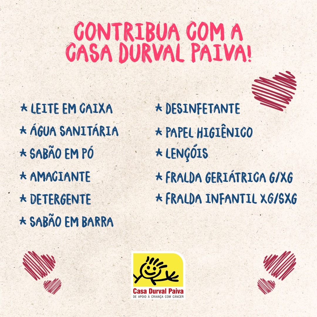 A Casa Durval Paiva busca prestar o melhor atendimento às crianças e adolescentes acolhidos, se mantendo através da doação de itens, para a nutrição e acolhimento deles, durante o tratamento contra o câncer e doenças hematológicas crônicas, bem como, seus familiares.