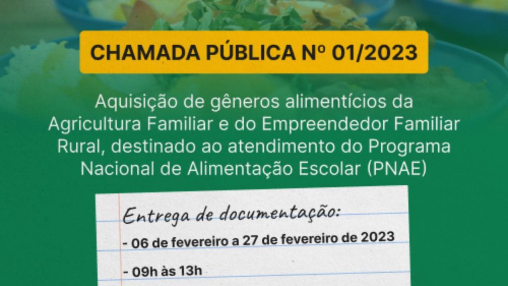 A Prefeitura de Parnamirim, por meio da Secretaria Municipal de Educação (SME), está recebendo, até o próximo dia 27 de fevereiro, a documentação comprobatória de agricultores familiares e empreendedores familiares rurais interessados no fornecimento de gêneros alimentícios para compor o cardápio da Alimentação Escolar das escolas municipais e Centros de Educação Infantil de Parnamirim.
