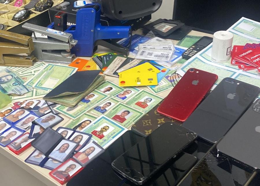 Durante as diligências, foram encontrados e apreendidos: papel para confecção de identidades e fotos 3×4 diversas; mais de trinta cartões de crédito, todos falsificados e em nome de pessoas diferentes; cinco maquinetas de cartão de crédito; mais de vinte relógios de modelos diversos; trezentos e setenta e oito identidades falsas, finalizadas pelos suspeitos, assim como cinquenta e três unidades não terminadas. De acordo com a DEFUR/NATAL, as investigações continuam.