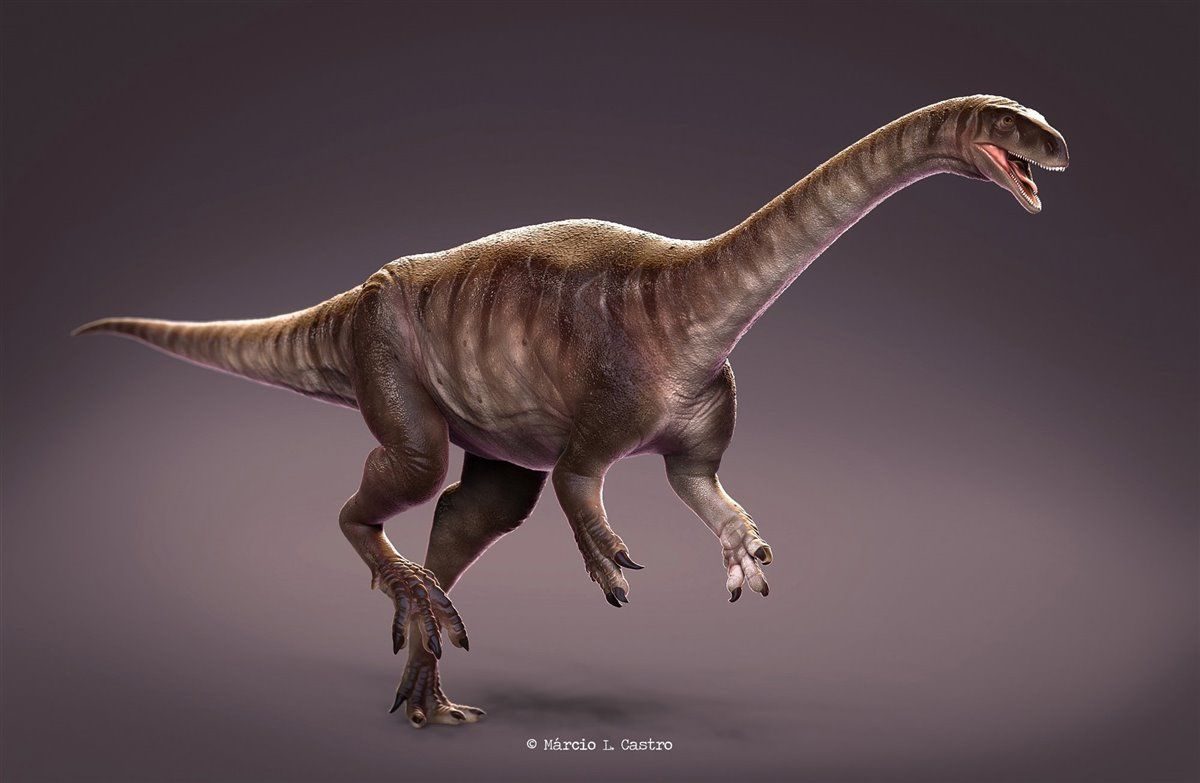Os Sauropodomorpha são todos os dinossauros apelidados de “pescoçudos”, ou seja, aqueles de pescoço alongado. A espécie brasileira destacada na pesquisa foi encontrada em rochas do período Triássico no Rio Grande do Sul, onde atualmente se concentram os registros fósseis de dinossauros mais antigos já localizados no mundo. “Datando as rochas de lá, foi confirmado que o Brasil foi a casa dos primeiros dinossauros. Estávamos no lugar certo para pesquisar sobre a origem dos sacos aéreos. Então, fizemos uma parceria com o pessoal de lá (do Rio Grande do Sul) para conseguir acessar fósseis de diferentes dinossauros e do início da história evolutiva deles”, explica Aline.
