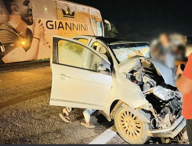 Um acidente envolvendo o ônibus do cantor Gianinni Alencar e um carro de passeio deixou os ocupantes do menor veículo feridos, na madrugada desta segunda-feira (24). A colisão aconteceu na BR-226, entre as cidades de Santa Cruz e Tangará, no Agreste potiguar.