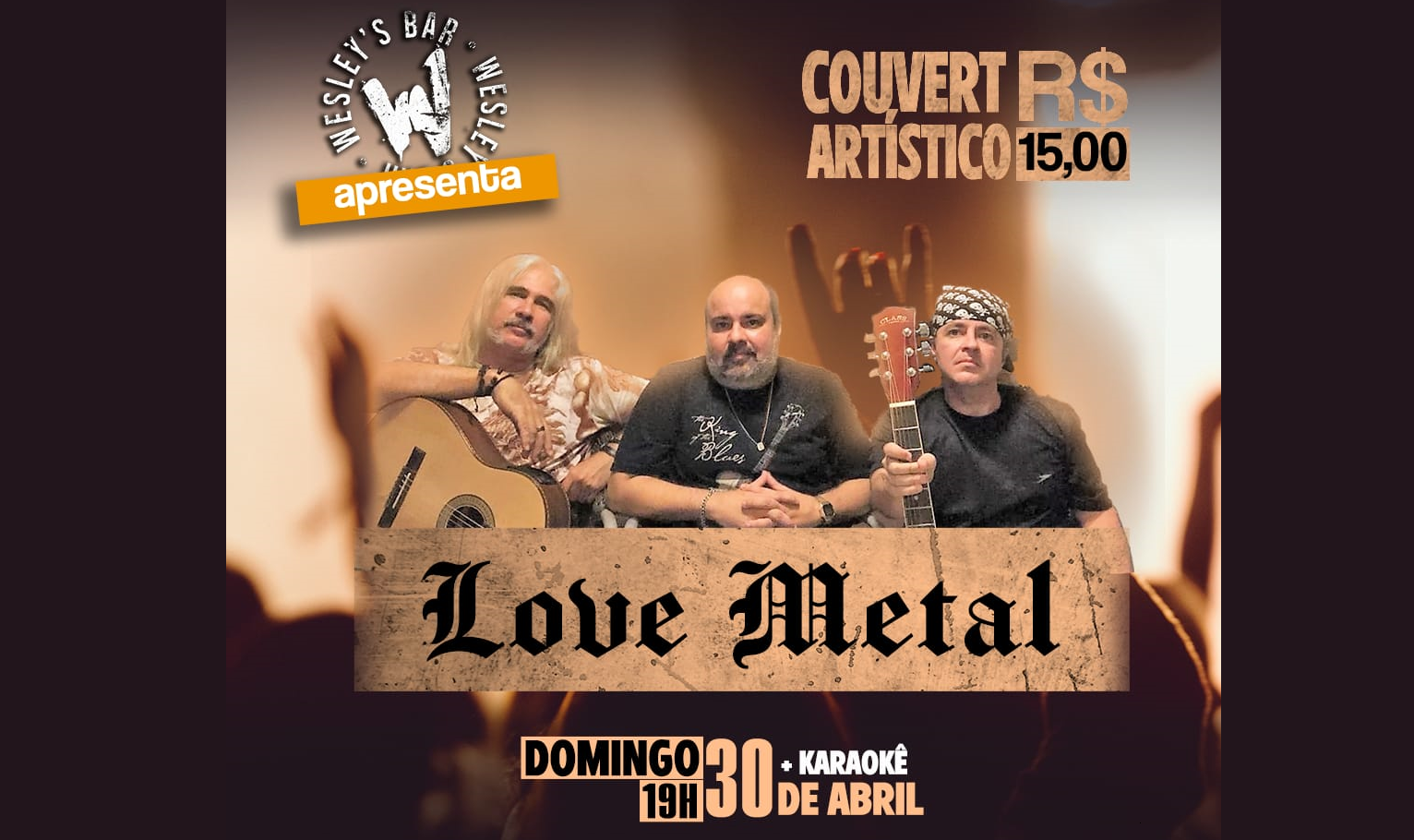 Domingo véspera de feriado a Banda Love Metal fará um show recheado de clássicos internacionais. A Banda irá tocar Baladas do Rock/Metal dos anos 70, 80 e 90. Será um repertório com músicas dos Scorpions, Beatles, Led Zeppelin, Metallica, Queen, Iron Maiden, Nazareth, Kansas e muito mais o show começará as 19h. Após o show a noite vai finalizar com Karaokê.