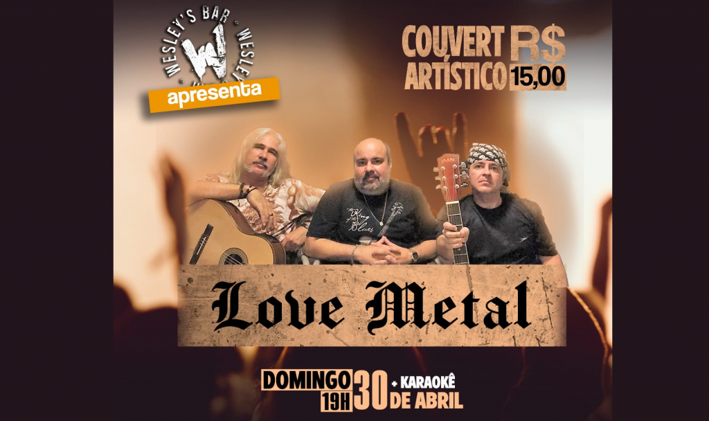 Domingo véspera de feriado a Banda Love Metal fará um show recheado de clássicos internacionais. A Banda irá tocar Baladas do Rock/Metal dos anos 70, 80 e 90. Será um repertório com músicas dos Scorpions, Beatles, Led Zeppelin, Metallica, Queen, Iron Maiden, Nazareth, Kansas e muito mais o show começará as 19h. Após o show a noite vai finalizar com Karaokê.