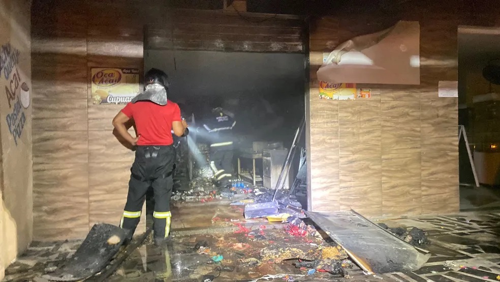 O incêndio começou por volta das 18h30 deste sábado (6) e durou cerca de 15 minutos. O fogo destruiu o estabelecimento.