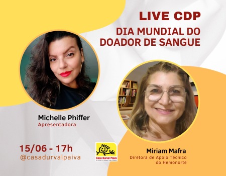 Nesta quinta-feira (15), a Casa Durval Paiva realiza uma live, pelo www.instagram.com/casadurvalpaiva, onde Miriam Mafra, Diretora de Apoio Técnico do Hemonorte, vai falar sobre a importância do ato de doar sangue, além de tirar dúvidas sobre o ato, para que mais pessoas possam ajudar a salvar vidas.