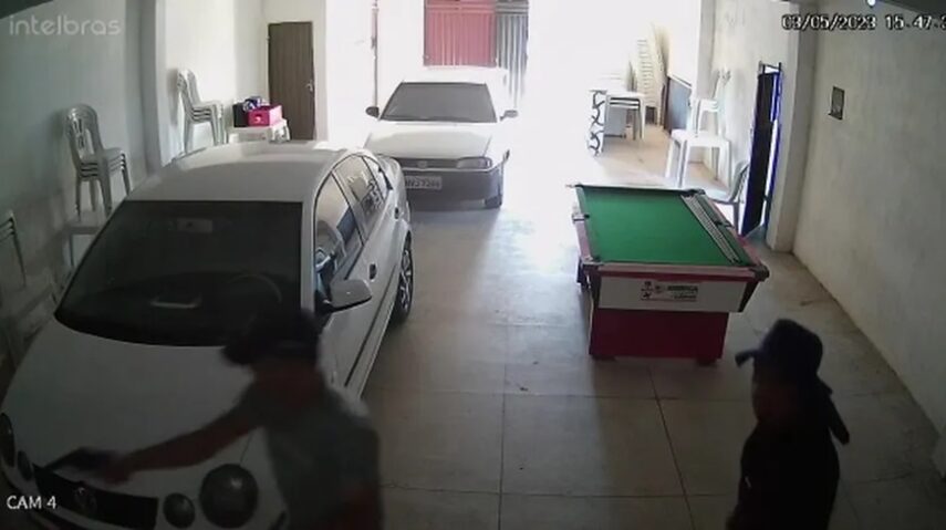 O comerciante estava em casa quando dois homens chegaram ao local em uma moto. Imagens de câmeras de segurança instaladas na casa mostram o momento em os suspeitos chegam sem capacete.