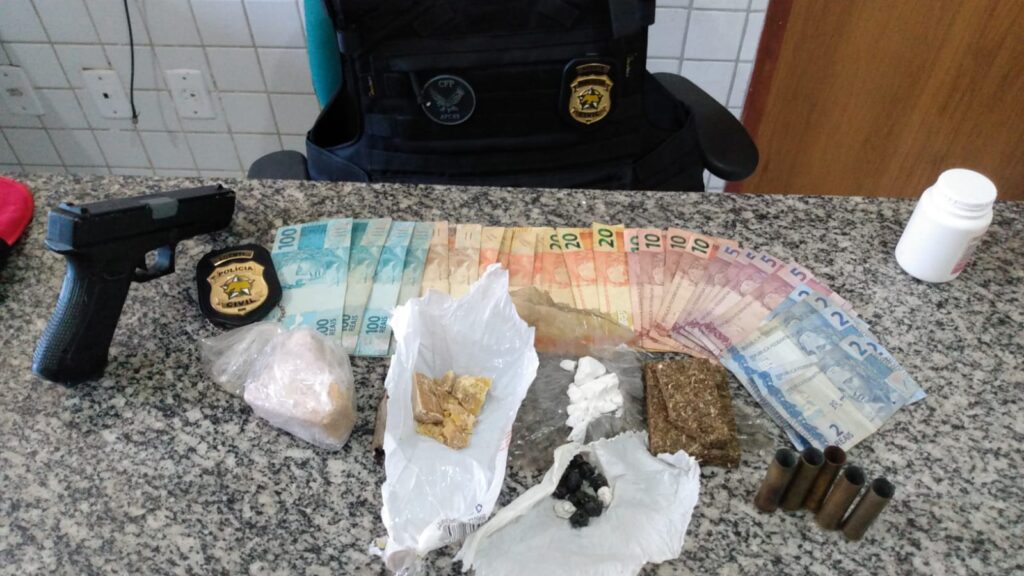 Contra o casal, existiam mandados de prisão temporária, bem como um mandado de busca e apreensão, o qual foi cumprido na sequencia na residência do casal com o apoio do Grupo Tático Operacional (GTO – PM/RN), ocasião em que foi encontrada certa quantidade de drogas avaliadas em R$ 10 mil, além de munições. Também foram apreendidos aparelhos celulares e dinheiro.