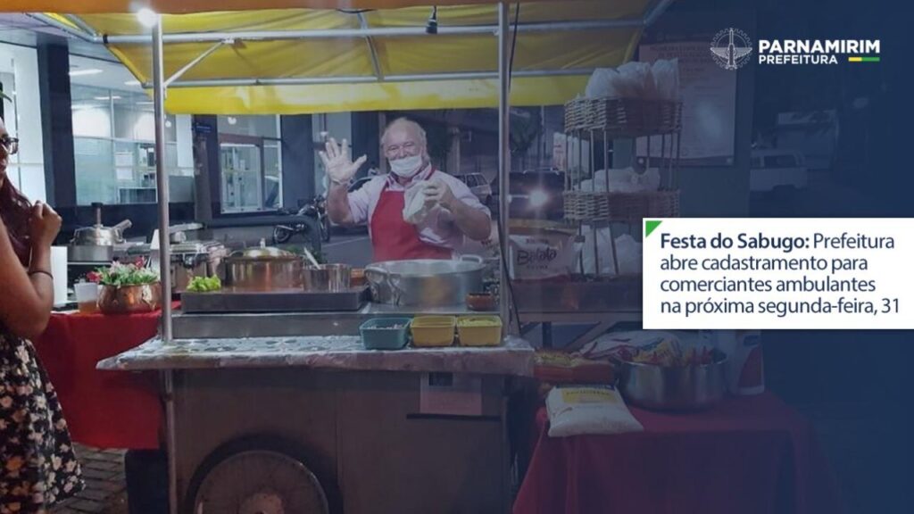 A Prefeitura de Parnamirim, por meio da Secretaria Municipal de Serviços Urbanos (Semsur) inicia na próxima segunda-feira (31), o cadastramento de comerciantes ambulantes para trabalharem na área externa da Festa do Sabugo 2023. o cadastro será realizado exclusivamente por meio de link oficial que será disponibilizado no site da prefeitura.
