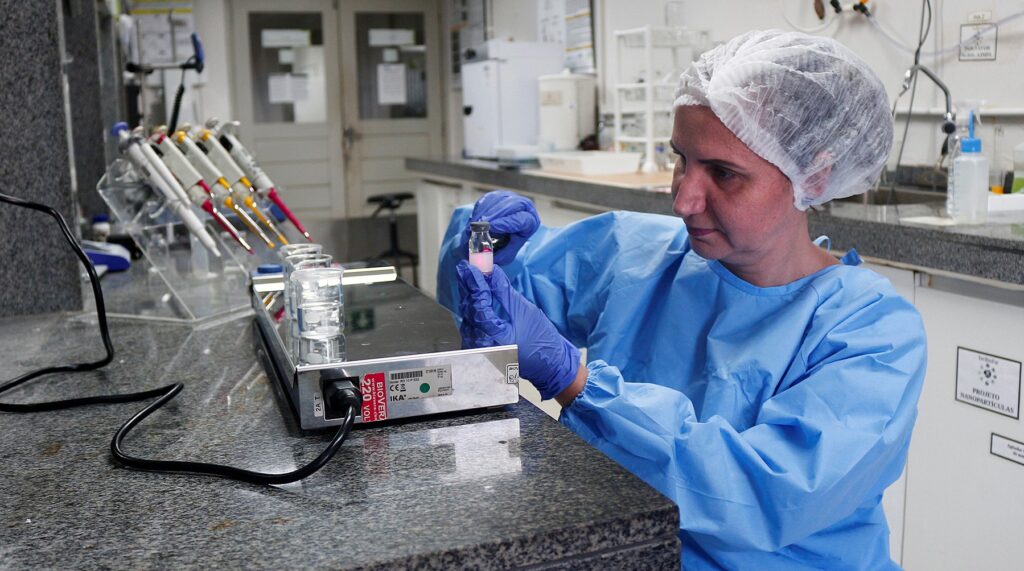 “A invenção refere-se ao método de preparo e produto de sistemas nanoparticulados e microparticulados de quitosana, para liberação modificada de substâncias, as quais podem incluir fármacos, peptídeos, proteínas, DNA/RNA, inseticidas, entre outros. Isso foi possível a partir de sistemas particulados à base de quitosana, sulfato e genipina, sendo biocompatíveis e caracterizados com uma carga de superfície positiva. Assim, apresentam uma maior estabilidade para resistir a condições ácidas de pH, extremamente útil para administração oral de agentes terapêuticos”, detalha.