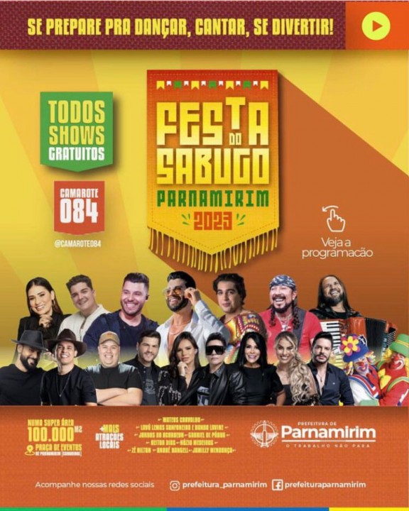 A aguardada Festa do Sabugo 2023 está marcada para acontecer de 20 a 27 de agosto, no terreno da antiga fábrica da Coca-Cola, no bairro Cohabinal, em Parnamirim. Criada há aproximadamente 40 anos para encerrar os festejos juninos na cidade, esta edição promete ser a maior até agora. O lançamento oficial do evento ocorreu na terça-feira (25), na Prefeitura de Parnamirim e contou com a presença de cerca de 250 pessoas.