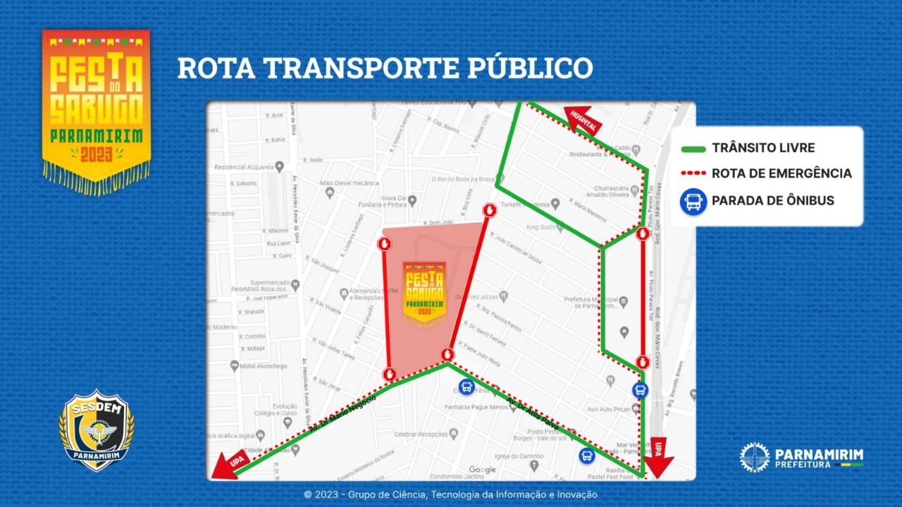 Pensando na comodidade de quem vai prestigiar a festa do sabugo 2023, a Prefeitura de Parnamirim, por meio da Secretaria Municipal de Segurança, Mobilidade Urbana e Defesa Social (Sesdem) preparou um plano de mobilidade urbana especial para os dias de festa.