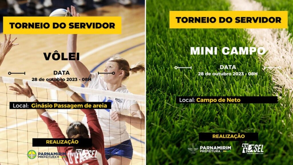 E a Secretária de Esporte e Lazer estará realizando os campeonatos de vôlei e mini campo em alusão às comemorações do Dia do Servidor Público. As inscrições poderão ser feitas através dos QRs codes, disponibilizados pela SEL, onde estão as regras e documentação necessárias para participar.