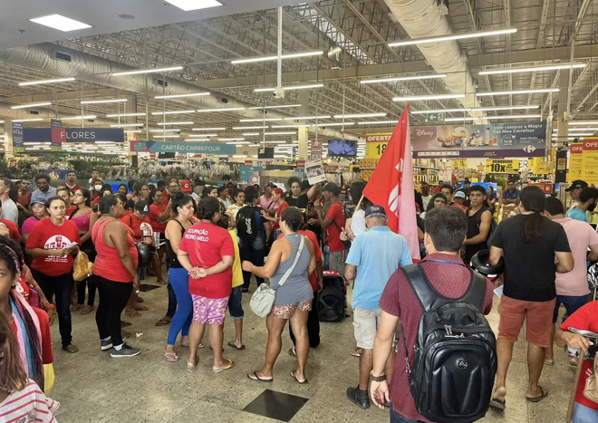 Manifestantes ocuparam parte de um hipermercado localizado em um shopping da Zona Norte de Natal, na manhã deste sábado (13).