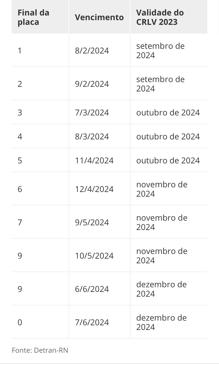 Calendário do licenciamento de veículos 2024 no Rio Grande do Norte