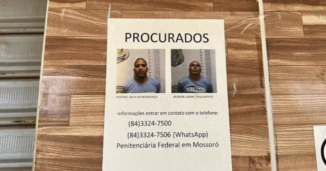 Nesta sexta-feira (16) os nomes e fotos de Rogério Mendonça e Deibson Nascimento – fugitivos do presídio de segurança máxima de Mossoró (RN) – passaram a constar na lista vermelha da Interpol. Logo após a fuga, o Brasil pediu a inclusão na lista da Interpol – normalmente utilizado para cooperação entre as polícias de diferentes países quando criminosos perigosos conseguem fugir das nações onde são procurados.