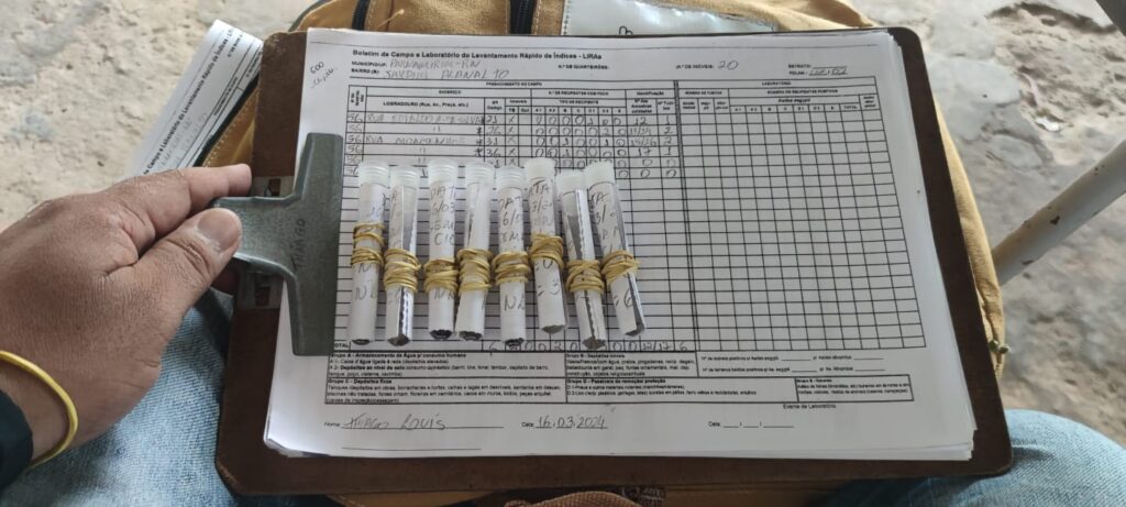 Foram feitas inspeções em diversas localidades. Essa coleta serve de informação. É como um dos norteadores entomológicos que são realizados para fazer o cruzamento com os dados epidemiológicos atuais, para definir quais áreas ou microrregiões que estão com maior risco para a população.