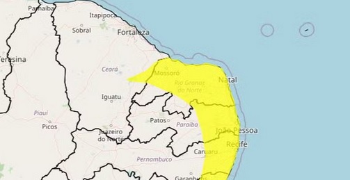 Municípios atingidos pelo alerta amarelo