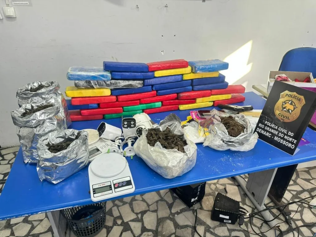 A ação foi realizada nessa quarta-feira (14) e contou com a participação da Divisão de Polícia Civil do Oeste (DIVIPOE), da Delegacia Especializada em Furtos e Roubos de Mossoró (DEFUR/Mossoró) e da Delegacia Especializada em Falsificações e Defraudações de Mossoró (DEFD/Mossoró).Durante as buscas, os policiais encontraram cerca de 15 quilos de maconha “prensada”, três quilos de maconha “refinada”, pedras de crack e três quilos de cocaína e outras drogas já fracionadas para venda. O prejuízo estimado ao crime foi de quase R$ 200 mil.