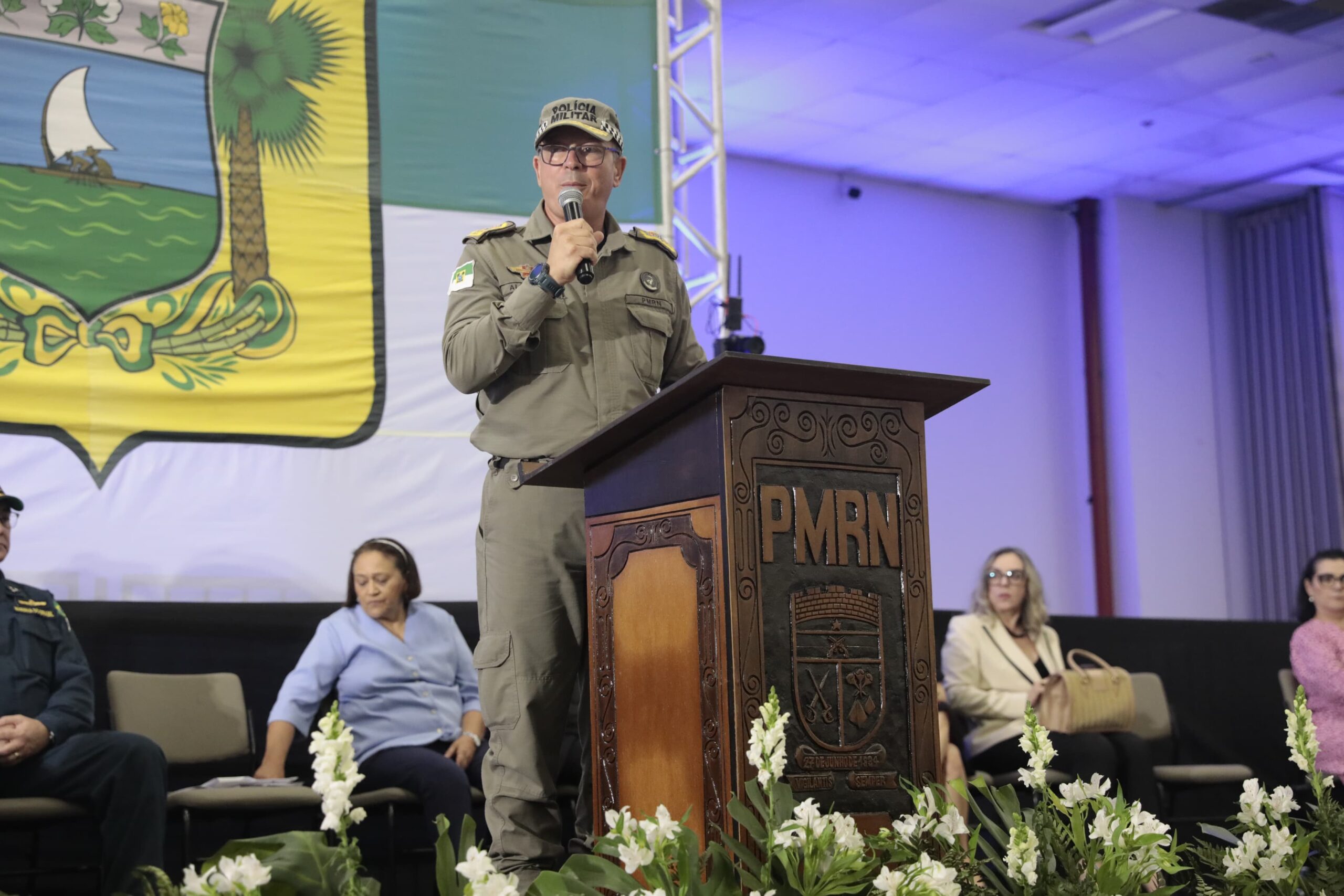 O Comandante Geral da Polícia Militar do Rio Grande do Norte, Coronel Alarico, destacou durante a cerimônia, a importância da formação contínua e do comprometimento dos novos soldados com a missão de servir e proteger.