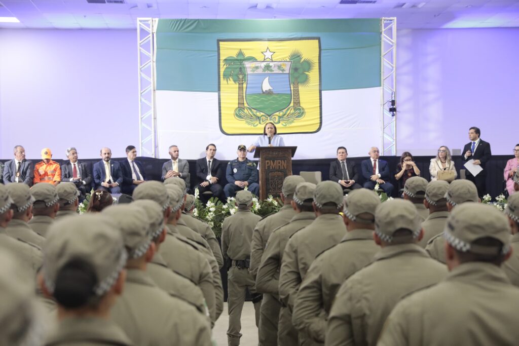 A governadora Fátima Bezerra ressaltou os investimentos em segurança, os desafios e destacou os números de 839 homens e 240 mulheres. “Esse número de mulheres crescendo cada vez mais no efetivo. É um marco de uma batalha diária, que lugar de mulher é onde ela quiser, que se mulher tem convocação, para trabalhar com segurança pública, porque não, não dar o mesmo direito, e isso é feito da nossa gestão que alteramos a lei para crescimento e ingresso de mais mulheres nas fileiras da Polícia Militar do Rio Grande do Norte. Nós nunca medimos esforços para segurança pública, já são mais de 2.600 novos soldados e mais de 15 mil promoções na Polícia Militar, é uma felicidade sem tamanho”, ressaltou a governadora.