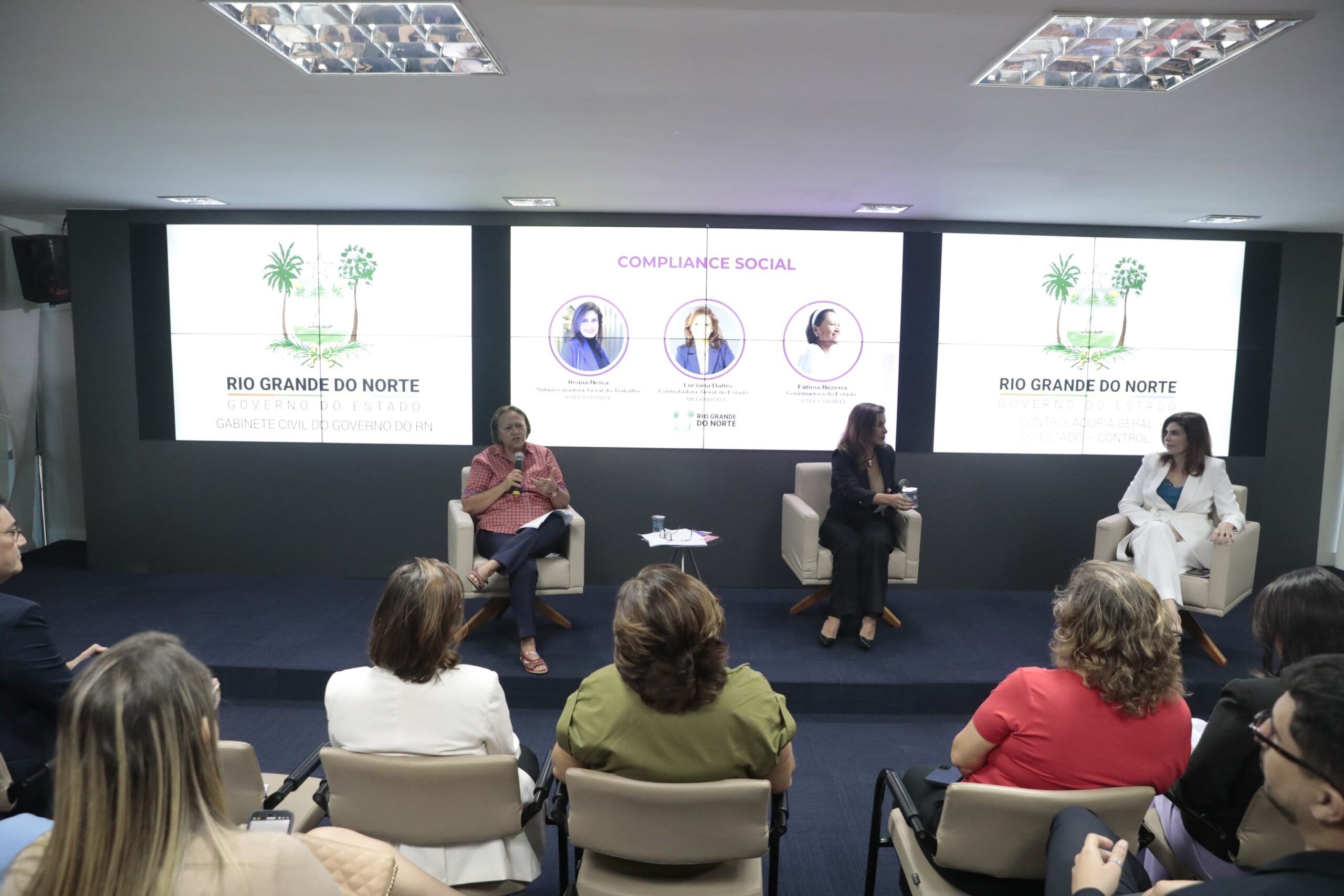 O ato de assinatura das portarias foi precedido do lançamento do Programa de Compliance Social do Estado do RN e da campanha de enfrentamento ao Assédio no serviço público. A governadora Fátima Bezerra e a subprocuradora geral do Trabalho, Ileana Neiva, fizeram exposição sobre o tema “Representatividade Feminina em espaços de poder”, com mediação da controladora geral do Estado, Luciana Daltro.