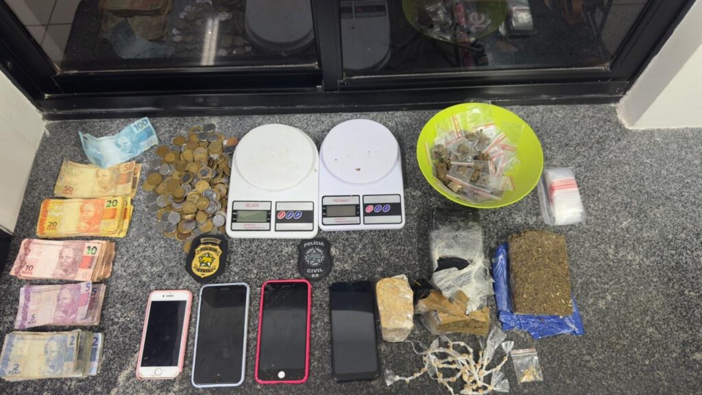 Durante a operação, a equipe policial apreendeu aproximadamente três quilos de maconha, 750 gramas de crack, cerca de R$ 1.700 em dinheiro fracionado e diversos materiais utilizados na comercialização de drogas, como embalagens tipo “zip lock” e uma balança de precisão. Segundo a investigação, a suspeita já havia sido presa anteriormente por tráfico de drogas e posse de arma de fogo, sendo conhecida por seu vínculo com um investigado da região que responde a diversas outras acusações.