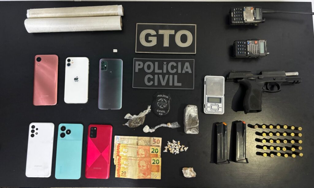 Policiais civis da 81ª Delegacia de Polícia (DP) de Tangará, da 9ª Delegacia Regional (DR) de Santa Cruz, da 80ª Delegacia de Polícia (DP) de Santa Cruz, em ação conjunta com a Polícia Militar (PM), prenderam, na tarde de quarta-feira (20), um homem suspeito pela prática do crime de tráfico de drogas, posse ilegal de arma de fogo, receptação e organização criminosa. A prisão ocorreu no município de Coronel Ezequiel, interior do Rio Grande do Norte.