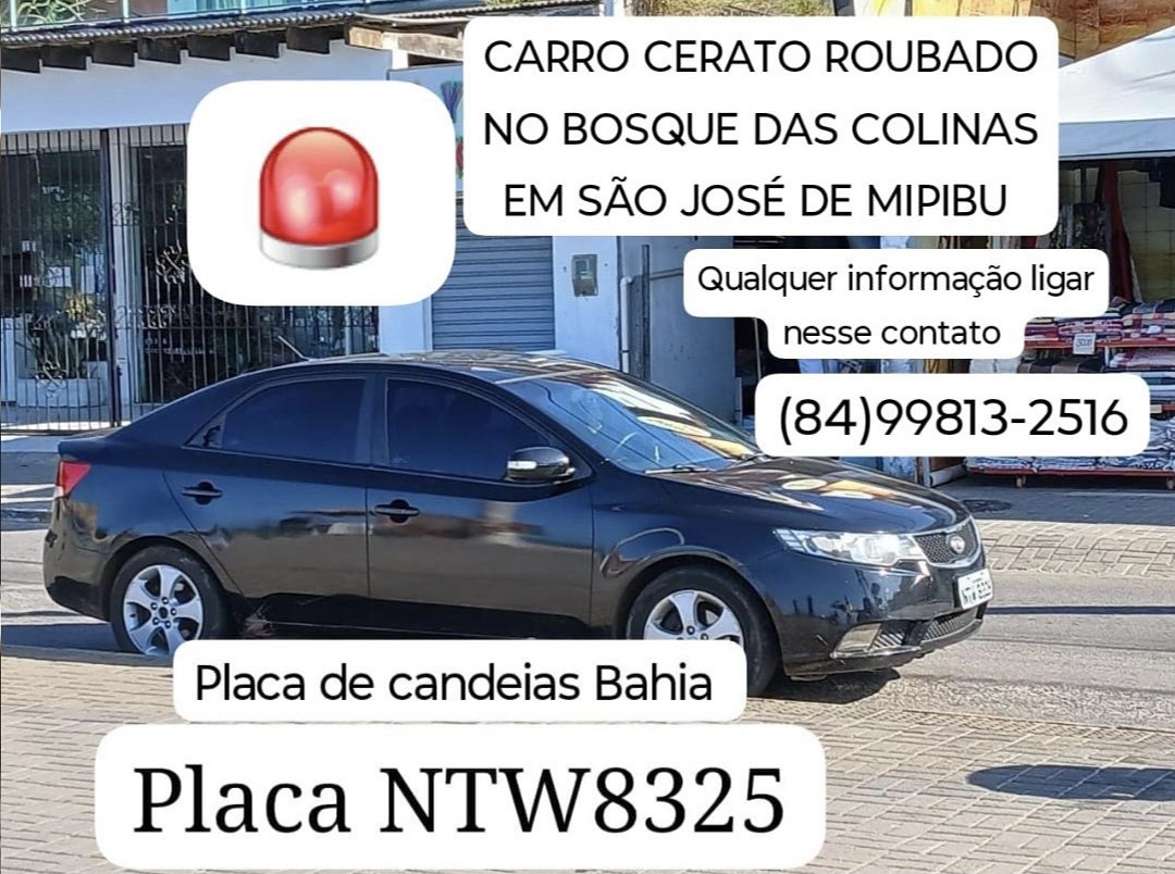 Na ação um veículo da marca KIA, modelo Cerato de placa NTW-8325 foi roubado na madrugada de terça pra quarta, no dia 22 para o dia 23, no município de São José do Mipibú.