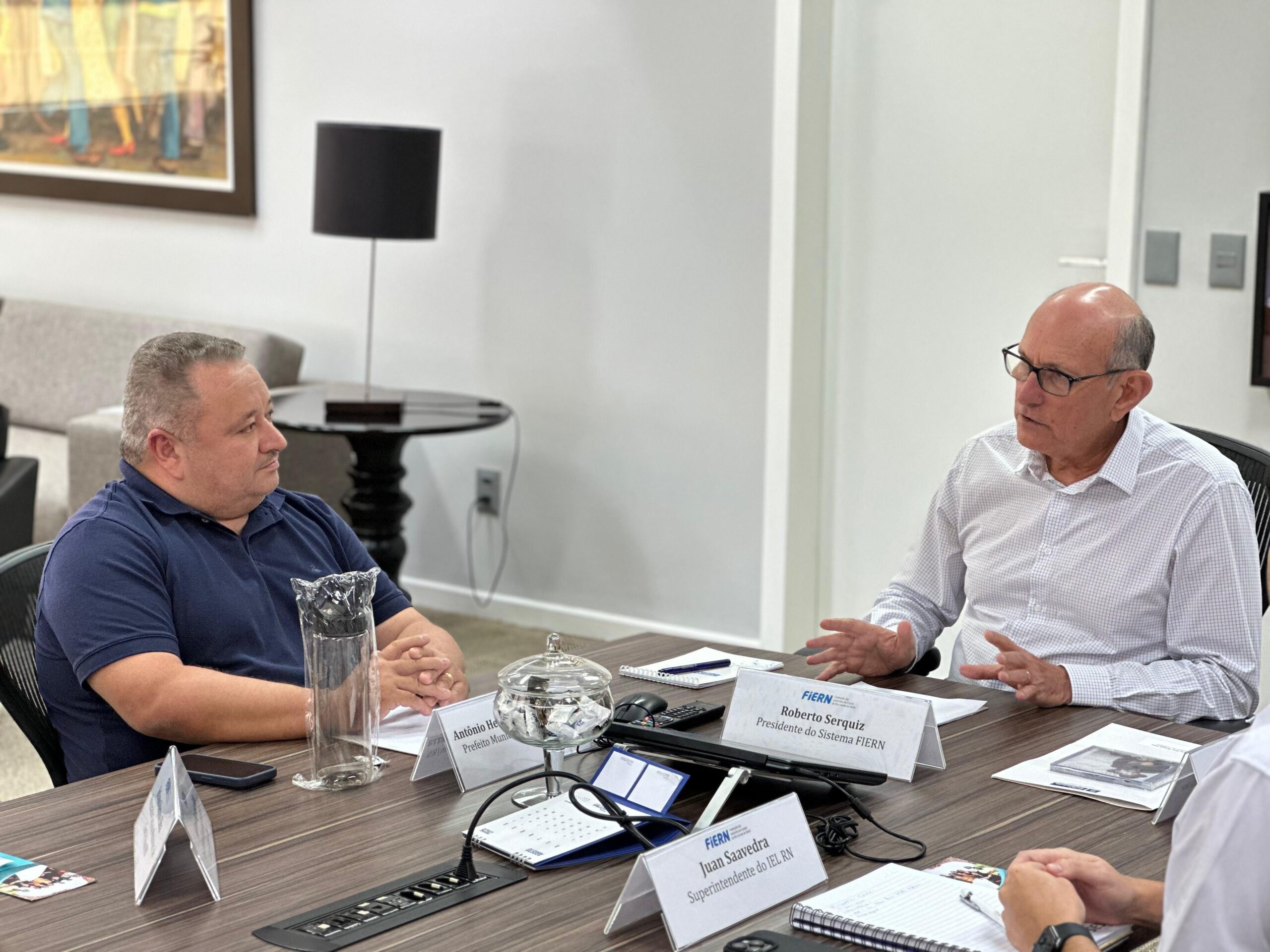 O prefeito de Ceará-Mirim, Antônio Henrique, esteve nesta quarta-feira (28) na sede da Federação das Indústrias do Rio Grande do Norte (FIERN), onde foi recebido pelo presidente da entidade, Roberto Serquiz, para tratar de parcerias voltadas à qualificação profissional e ao desenvolvimento econômico do município.
