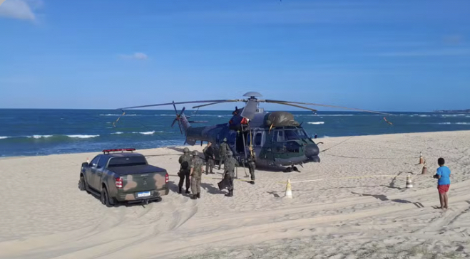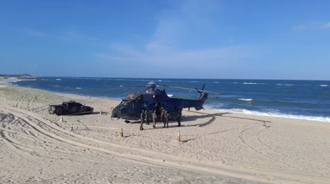 Um helicóptero da Força Áerea Brasileira (FAB) fez um pouso de emergência na manhã deste sábado (18) na Praia de Barra do Rio, no município de Extremoz, na Grande Natal.