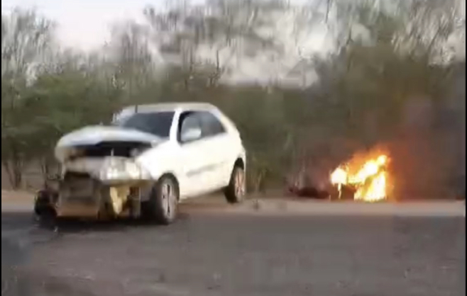 Uma colisão envolvendo um carro Fiat Pálio e uma moto, resultou na morte de duas mulheres. O impacto da batida foi tão forte que motocicleta pegou fogo. Uma mulher identificada como Francilucia Pinheiro Souza morreu no local.
