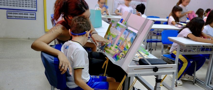 Uma educação inclusiva é muito mais do que a garantia de vaga nas escolas. É preciso fornecer recursos de acordo com as necessidades específicas de cada estudante. Benício, 8 anos de idade, estuda no Núcleo de Educação da Infância da Universidade Federal do Rio Grande do Norte (NEI/UFRN). Curioso e bastante expressivo, o garotinho é desafiado diariamente a superar barreiras impostas pelo autismo e pela baixa visão, sobretudo em uma sala de aula convencional.