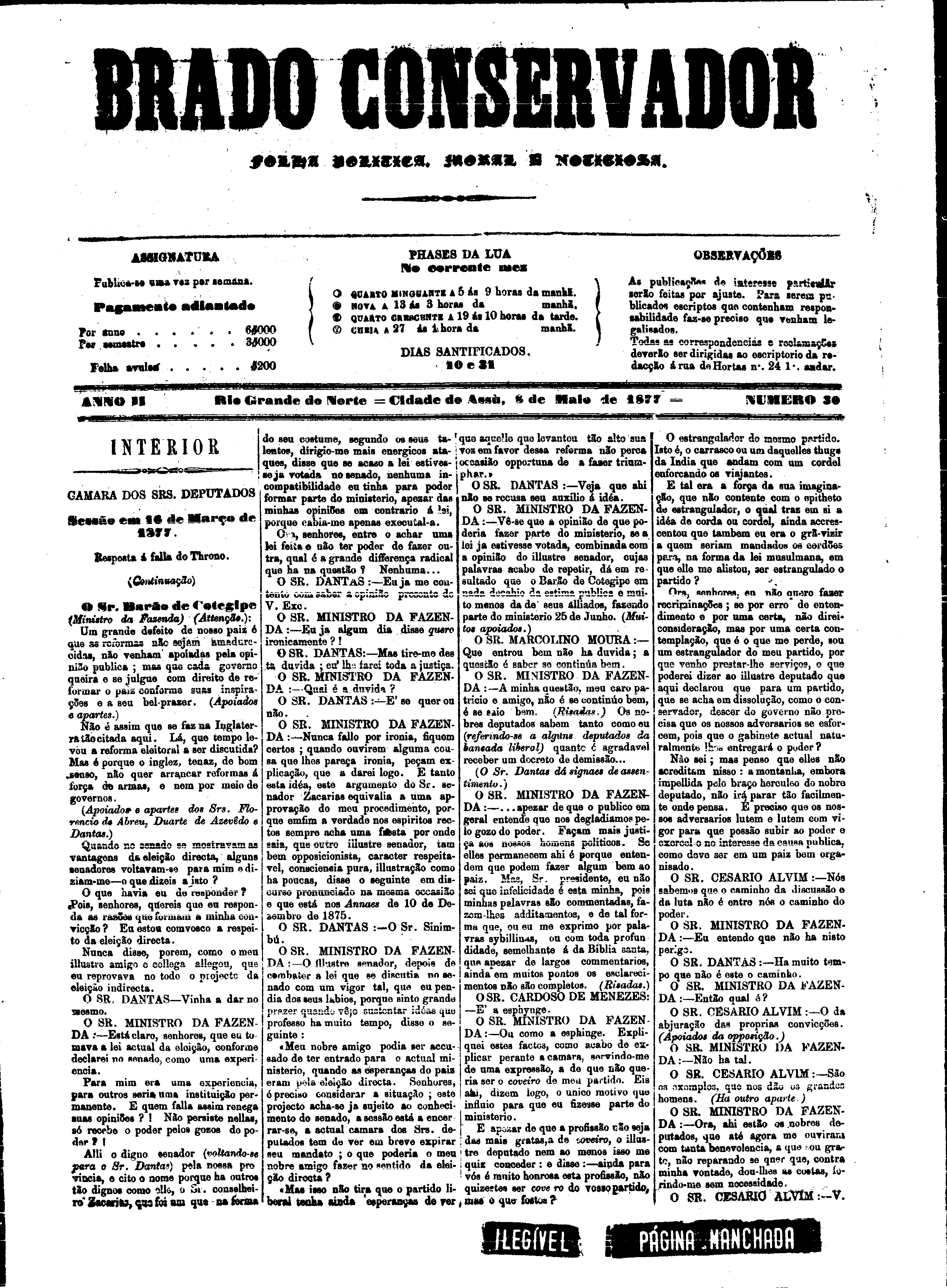 O acervo da BCZM reúne títulos de grande relevância histórica, preservando registros que constituem verdadeiros marcos da formação social e cultural do Rio Grande do Norte. Entre eles estão jornais publicados ainda no século XIX, como o Brado Conservador, de Assú, que circulou entre 1876 e 1882 e se configura como fonte essencial para a compreensão de temas como a seca de 1877, além de questões sociais e debates políticos da época.