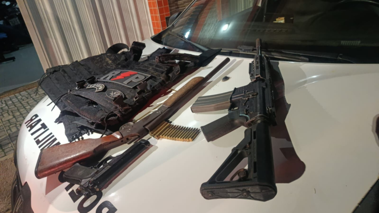 Com os envolvidos, foram apreendidos um fuzil calibre 5.56, uma espingarda calibre 36, um simulacro de pistola, munições e coletes balísticos. O material foi encaminhado à 42ª Delegacia de Polícia de Areia Branca, onde a ocorrência foi formalizada.