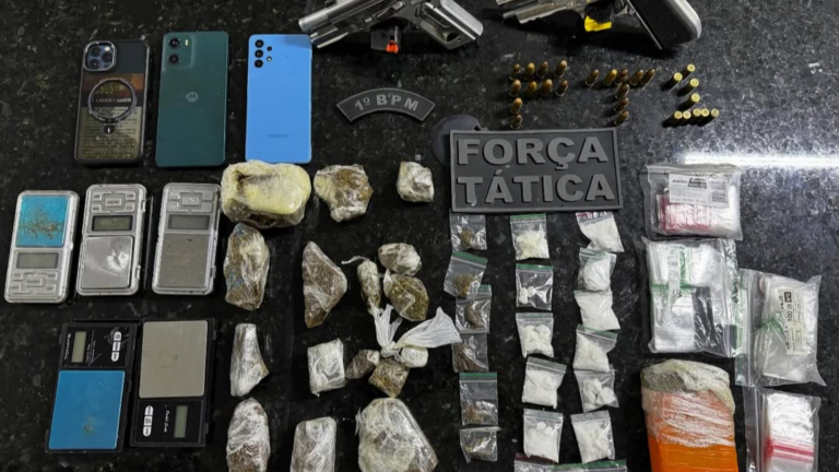 A ocorrência também resultou na apreensão de uma motocicleta Yamaha Factor 150cc, de placa QGS5F28, que havia sido roubada na mesma data. Foram encontrados ainda três aparelhos celulares — um Samsung azul, um Motorola verde e um iPhone azul — além de cinco balanças de precisão.
