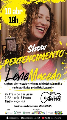 Lene Macedo, uma das vozes mais expressivas do cenário musical potiguar, apresenta canções de seu CD gravado em 2011 – inteiramente dedicado a compositores do Rio Grande do Norte –, além de clássicos de Chico Buarque, da portuguesa Amália
