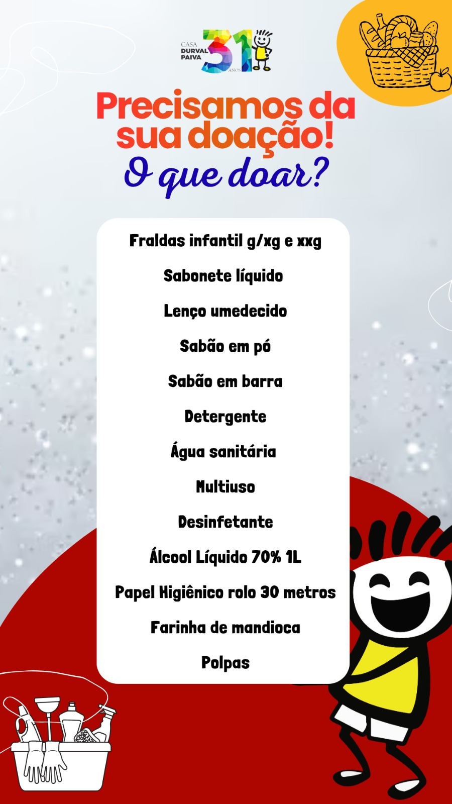 A Casa Durval Paiva segue mobilizando a sociedade para contribuir com a manutenção dos atendimentos prestados a crianças e adolescentes em tratamento contra o câncer e doenças hematológicas, além de suas famílias. A instituição reforça a necessidade de doações de itens de higiene, limpeza e alimentos, fundamentais para o funcionamento diário da Casa.