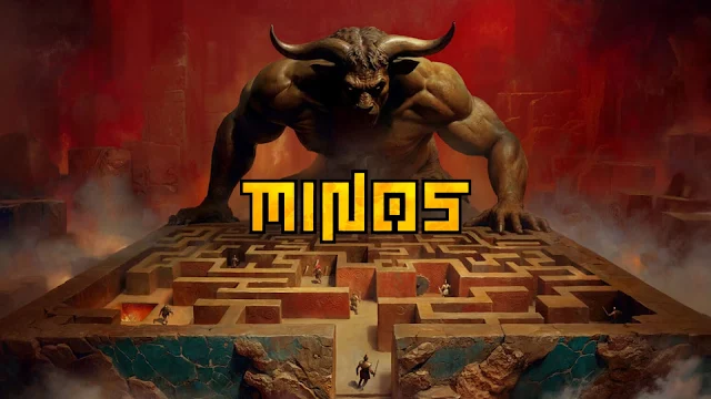 A narrativa de Minos usa como inspiração a mitologia grega com algumas alterações. Na versão mitológica, o rei Minos pediu a Poseidon um sinal de legitimidade. Com isso, ele recebeu um touro sagrado para sacrificar, mas desobedeceu ao deus ao poupar o animal. Como punição, Poseidon fez com que Pasífae, esposa de Minos, se apaixonasse pelo touro, e dessa união nasceu Astério. Envergonhado, Minos mandou Dédalo construir o Labirinto de Creta para aprisionar a criatura.