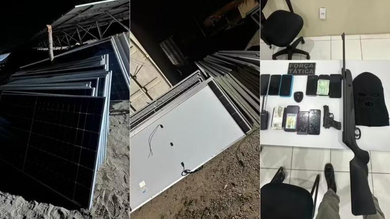 Segundo a polícia, os criminosos já haviam separado 166 placas fotovoltaicas para transporte, mas o material foi recuperado.