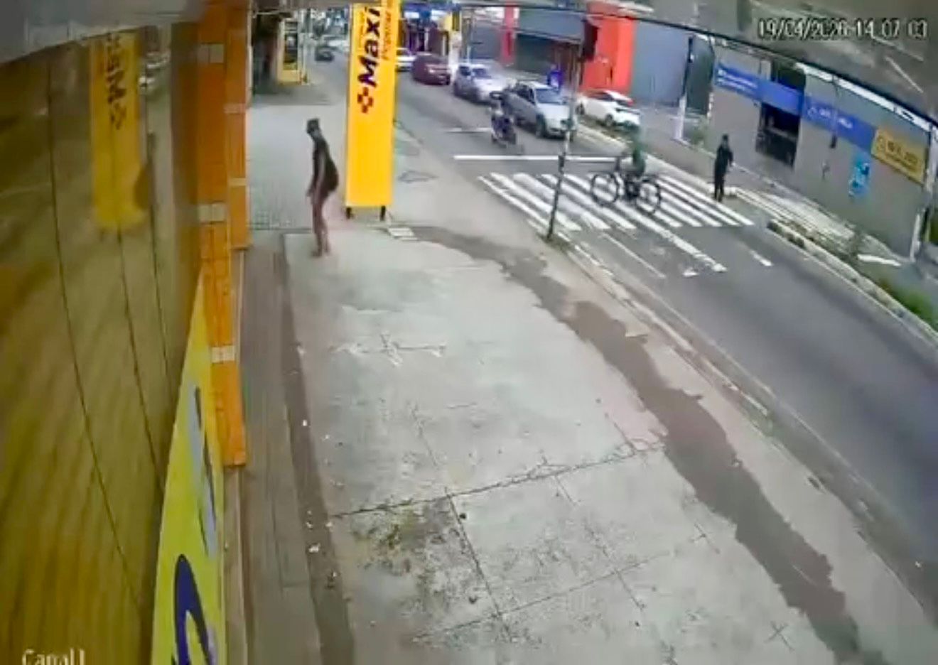 Um acidente envolvendo um motociclista e um ciclista foi registrado por uma câmera de segurança na tarde deste domingo (19), na Avenida Tomaz Landim, na zona Norte de Natal.