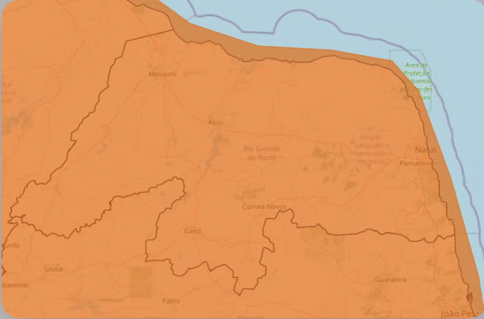 O Instituto Nacional de Meteorologia emitiu um alerta de perigo por chuvas intensas em todo o Rio Grande do Norte nesta sexta-feira (24). O aviso é válido até as 10h do sábado (25).